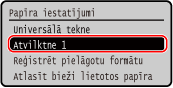 Atlasiet papīra atvilktnē ievietotā papīra formātu un nospiediet