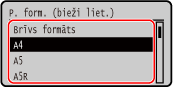 Ja jums ir bieži jāmaina ievietojamais papīrs, izmantojiet opciju [Brīvs formāts] — tādējādi katrā iekārtas lietošanas reizē varēsit mainīt iestatījumu, veicot mazāku skaitu darbību. Ja iestatījums printera draiverī ievērojami atšķiras no ievietotā papīra formāta, iekārtā var arī tikt parādīts kļūdas ziņojums.