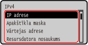 Lai izmantotu Remote UI (Attālais lietotāja interfeiss) un konfigurētu ugunsmūra iestatījumus, nepieciešama iekārtas IP adrese un MAC adreses informācija. Pārbaudiet šos pašreizējos iestatījumus.