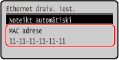 Ja iekārtai ir izveidots savienojums ar vadu LAN, varat skatīt iekārtai iestatīto MAC adresi.