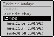Failų USB atminties įrenginyje pasirinkimo ekranas