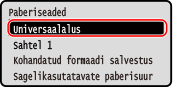 Kui mitmeotstarbelisse salve on asetatud paber, kuvatakse juhtpaneelil vaikimisi paberi formaadi ja tüübi seadistamise kuva.