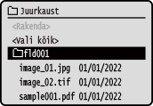 [Avamenüü] kuvaKuvatakse USB-mäluseadmel olevad failid ja kaustad.