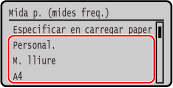 Podeu canviar la mida de paper que aparegui a la pantalla al Pas 1. Possibilitat d'amagar mides de paper que no s'utilitzen
