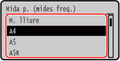 Si teniu carregat paper en orientació horitzontal, seleccioneu [A5]. Si teniu carregat paper en orientació vertical, seleccioneu [A5R].