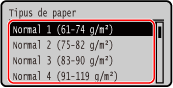De manera predeterminada, la mida i el tipus de paper del calaix de paper són A4 i Normal 2. Si carregueu paper d'una mida o tipus diferent, canvieu les opcions del paper.