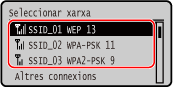 Xifratge per a WPA/WPA2: AES-CCMP o TKIP s'estableix automàticament d'acord amb l'encaminador LAN sense fil seleccionat.
