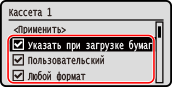 Форматы бумаги, флажки которых были сняты, не будут отображаться на экране настройки бумаги.