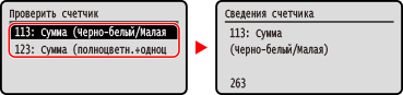 Можно отобразить счетчик, показывающий общее число страниц отпечатанных на данный момент в черно-белом и цветном режимах.