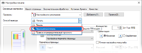 Печать документа, защищенного ПИН-кодом (Безопасная печать)