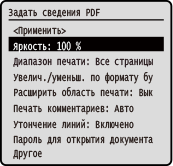 Для того чтобы открыть этот экран, нажмите [Задать сведения PDF] на экране настроек печати с запоминающего устройства.