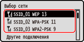 Подготовьте данные маршрутизатора беспроводной локальной сети (идентификатор SSID или ключ сети), к которой требуется подключиться, и держите их под рукой. Информация о маршрутизаторе беспроводной локальной сети, необходимая для подключения При подключении к маршрутизатору беспроводной локальной сети, поддерживающему WPA-EAP или WPA2-EAP в качестве стандарта безопасности, задайте IEEE 802.1X. Использование IEEE 802.1X |