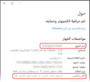 من [مواصفات الجهاز]، اعرض اسم الكمبيوتر وإصدار نظام التشغيل.