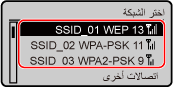 لتحديد طريقة مصادقة أو تشفير مختلفة، استخدم طريقة الإعداد اليدوي للاتصال. الاتصال بشبكة LAN لاسلكية من خلال تعيين التفاصيل (طريقة الإعداد اليدوي)