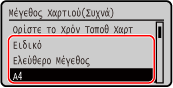 Επιλέξτε το μέγεθος χαρτιού προς καταχώριση και πατήστε