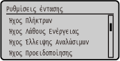 Ορίστε αν θα εκπέμπεται ήχος, όταν πατάτε ένα μη έγκυρο πλήκτρο, όπως όταν εισάγετε μια τιμή εκτός του εύρους ρύθμισης.