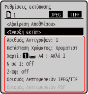 Εμφανίζεται η οθόνη των ρυθμίσεων εκτύπωσης από μέσα μνήμης.