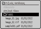 Οθόνη για επιλογή αρχείων σε συσκευή μνήμης USB