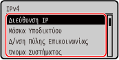 Μπορείτε να δείτε τη ρύθμιση της διεύθυνσης IP που έχει οριστεί στη συσκευή, όπως τη διεύθυνση IPv4 και τη διεύθυνση IPv6.