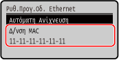 Μπορείτε να προβάλλετε τη διεύθυνση MAC που έχει οριστεί στη συσκευή, όταν η συσκευή είναι συνδεδεμένη στο ενσύρματο δίκτυο LAN.