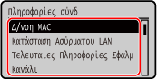 Προβολή της διεύθυνσης MAC και πληροφοριών σύνδεσης του ασύρματου δικτύου LAN