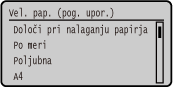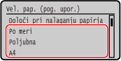 Prikazano velikost papirja na zaslonu lahko spremenite v 1. koraku. Skrivanje neuporabljenih velikosti papirja