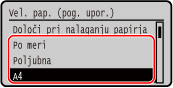 Ko je vložen papir nestandardne velikosti (velikost po meri)