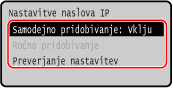 Nastavite na [Vključeno]. Čeprav ima prednost naslov IP, ki mu je dodeljen DHCP, pa je v primeru neodzivnosti DHCP-ja uporabljena nastavitev samodejnega IP-ja.