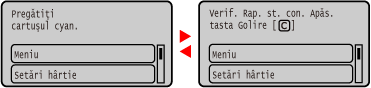Modificarea afișajului de pe ecranPuteți modifica afișajul de pe panoul de operare, de exemplu prin modificarea limbii de afișare și a unităților, respectiv prin afișarea sau ascunderea mesajelor. [Setări afişaj]