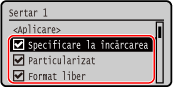 Formatele de hârtie ale căror casete de selectare sunt debifate nu sunt afișate pe ecranul cu setările hârtiei.