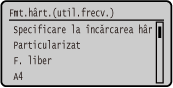 Dacă trebuie să modificați frecvent hârtia care trebuie încărcată, setați la [Format liber]; această opțiune va reduce numărul de pași necesari pentru schimbarea de fiecare dată a setării. De asemenea, puteți afișa un mesaj de eroare când setarea din driverul de imprimantă este foarte diferită de formatul de hârtie încărcată.