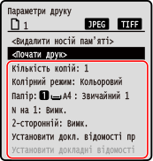 Відобразиться екран параметрів друку з носія пам’яті.