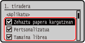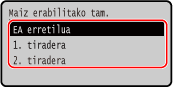 Paperaren ezarpenen pantailak maiz erabili diren erregistratutako paper-tamainak bistaratzen ditu. Erabili ez diren paper-tamainak bistaratzen badira, horiek paper-iturri bakoitzetik ezkuta ditzakezu paper-tamaina hautatzea errazagoa izan dadin.