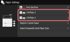 By default, the paper size and type of the paper drawer are set to LTR and Plain 2. When paper of a different size or type is loaded, change the paper settings.