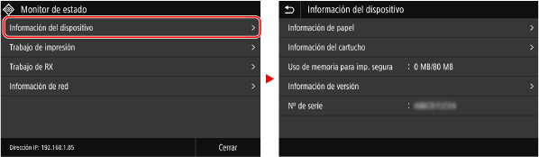 Si toca un nombre de elemento o botón, puede seleccionar el elemento. Aparece la pantalla seleccionada o se realiza la función seleccionada.