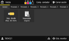 ![]() | [Opciones papel] Establezca el tamaño y el tipo de papel que desea usar y registre el papel de uso frecuente. Especificación del tamaño y el tipo de papel | |