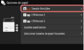 Si necesita cambiar con frecuencia el papel que se va a cargar, configure esta opción como [Tamaño libre]; esto reducirá el número de pasos necesarios para cambiar el ajuste cada vez. También puede mostrar un mensaje de error cuando el ajuste del controlador de la impresora sea significativamente diferente del tamaño del papel cargado.