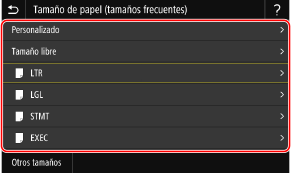 Pulse [Otros tamaños] y seleccione el tamaño de papel en la lista que aparece.
