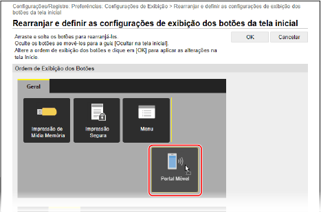 Em [Rearranjar e definir as configurações de exibição dos botões da tela inicial], selecione [Editar na Visualização de botão] ou [Editar na Visualização de lista].