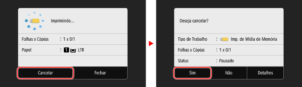 Nesse caso, cancele a impressão usando o painel de operação da máquina ou UI Remota.