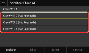3 | Selecione um chave de criptografia que não esteja registrada e pressione [Registrar]. ![]() A tela de entrada da chave de criptografia é exibida. |