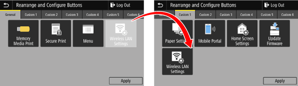 You can rearrange the buttons on the [Home] screen and move buttons to other tabs.