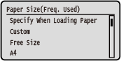 If you frequently need to change the paper to be loaded, set to [Free]; this will reduce the number of steps required to change the setting each time. However, note that this setting lets the machine perform printing even if there is mismatch between the paper type setting in the printer driver and the paper type actually loaded in the machine.