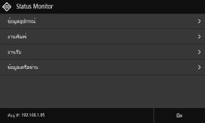 กด [Status Monitor] บนหน้าจอ [Home] และตำแหน่งที่ตั้งอื่นๆ
