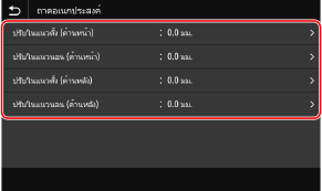 ระบุทิศทางการปรับโดยใช้ปุ่ม + และปุ่ม - และระบุความกว้างในการปรับในหน่วย 0.1 มม.