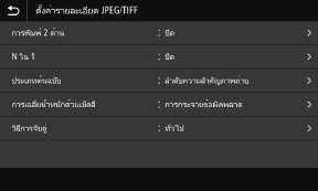 เมื่อต้องการแสดงหน้าจอ ให้กด [ตั้งค่าร.ละเอียด JPEG/TIFF] บนหน้าจอการตั้งค่าการพิมพ์สื่อข้อมูลหน่วยความจำ