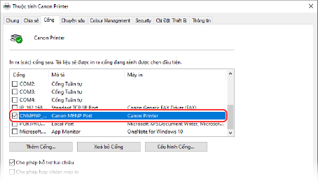 Trên thẻ [Ports], kiểm tra để đảm bảo hộp kiểm [Enable bidirectional support] được chọn.