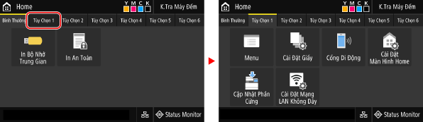 Bảng thao tác sử dụng màn hình cảm ứng. Trực tiếp chạm ngón tay của bạn vào các nút và mục hiển thị trên màn hình để vận hành chúng.