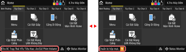 ] trên bảng thao tác. Theo mặc định, màn hình [Home] được hiển thị sau khi BẬT nguồn và ngay sau khi màn hình khởi động đóng lại, cũng như ngay sau khi đăng nhập. Màn hình [Home]Mẫu Bảng Cảm ứng | Mẫu LCD Đen Trắng | |