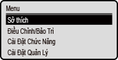 Thay Đổi Hiển Thị Màn HìnhBạn có thể thay đổi hiển thị của bảng thao tác, chẳng hạn như bằng cách thay đổi ngôn ngữ hiển thị và đơn vị, và hiện hoặc ẩn tin nhắn. [Cài Đặt Hiển Thị] Bạn có thể đảo ngược màu màn hình và điều chỉnh độ sáng để giúp màn hình dễ xem hơn. [Khả Năng Truy Cập] Xóa Cài Đặt Tự ĐộngTheo mặc định, nếu không có thao tác nào được thực hiện sau một khoảng thời gian nhất định, các cài đặt đang được cấu hình trên màn hình sẽ bị xóa và màn hình [Home] được hiển thị. Bạn có thể thay đổi thời gian cho đến khi các cài đặt bị xóa và màn hình hiển thị sau đó. [Tự Động Đặt Lại Giờ] [Ch.Năng Sau Khi TĐộng Đặt Lại] |
